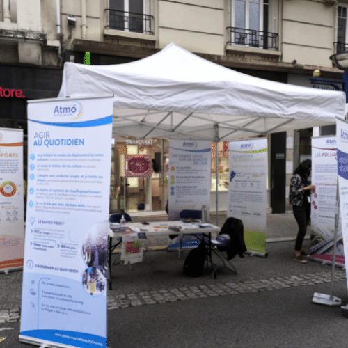 Atmo Nouvelle-Aquitaine propose de vous prêter gratuitement une collection de 13 roll-up (80x220cm) pour habiller vos stands et événements.